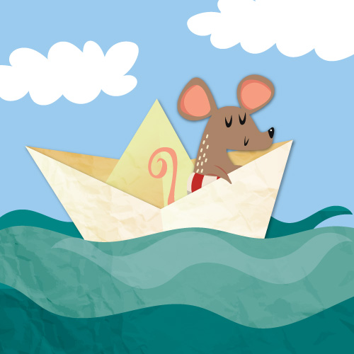 Бегајќи од стапица да се спаси, глувчето на брод од хартија се качи По река од дожд почна да плови во лов на нови континенти реши да оди Пловејќи глувчето какви ли сè чуда не виде, па ниту еднаш не посака дома да си иде Еден ден се качи на врв на една пирамида Друг ден се спушти на дно на едно море да ја види Атлантида И така пловејќи во излог на една продавница глувчето сиренце виде па посака негово да биде Лакомото глувче во обид сиренце да фати почна бродот да го клати И наместо со сиренце во рака глувчето падна во мака Глувчето сосе бродот во вода се најде крај на морнарска кариера него го снајде