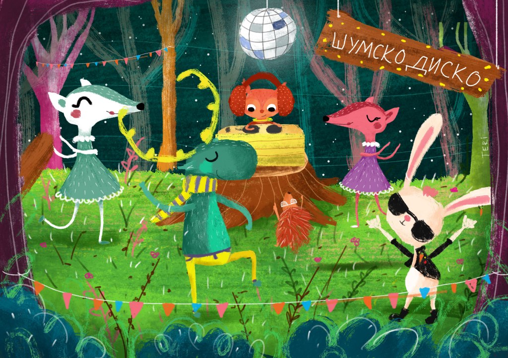 Во шумата чудна со весели бои еден мал локал гордо си стои на него пишува „Шумско диско“ дозволена е забава музика и пискот Диџејот Вервер музика си рока, а зајакот Белчо на панк рок си скока Диско-топка светка кума Лиса бара песна волчици во фустани со кореографија лесна ежиња на шанк полнат мали чашки шотови со сок од дренки за женки и за машки подиумот полн со животинки од музика се тресе нема кој не стапна во „Шумско диско“ а да не е весел. Од утро до мрак таму музика ечи им е гајле за вируси забава не се лечи!