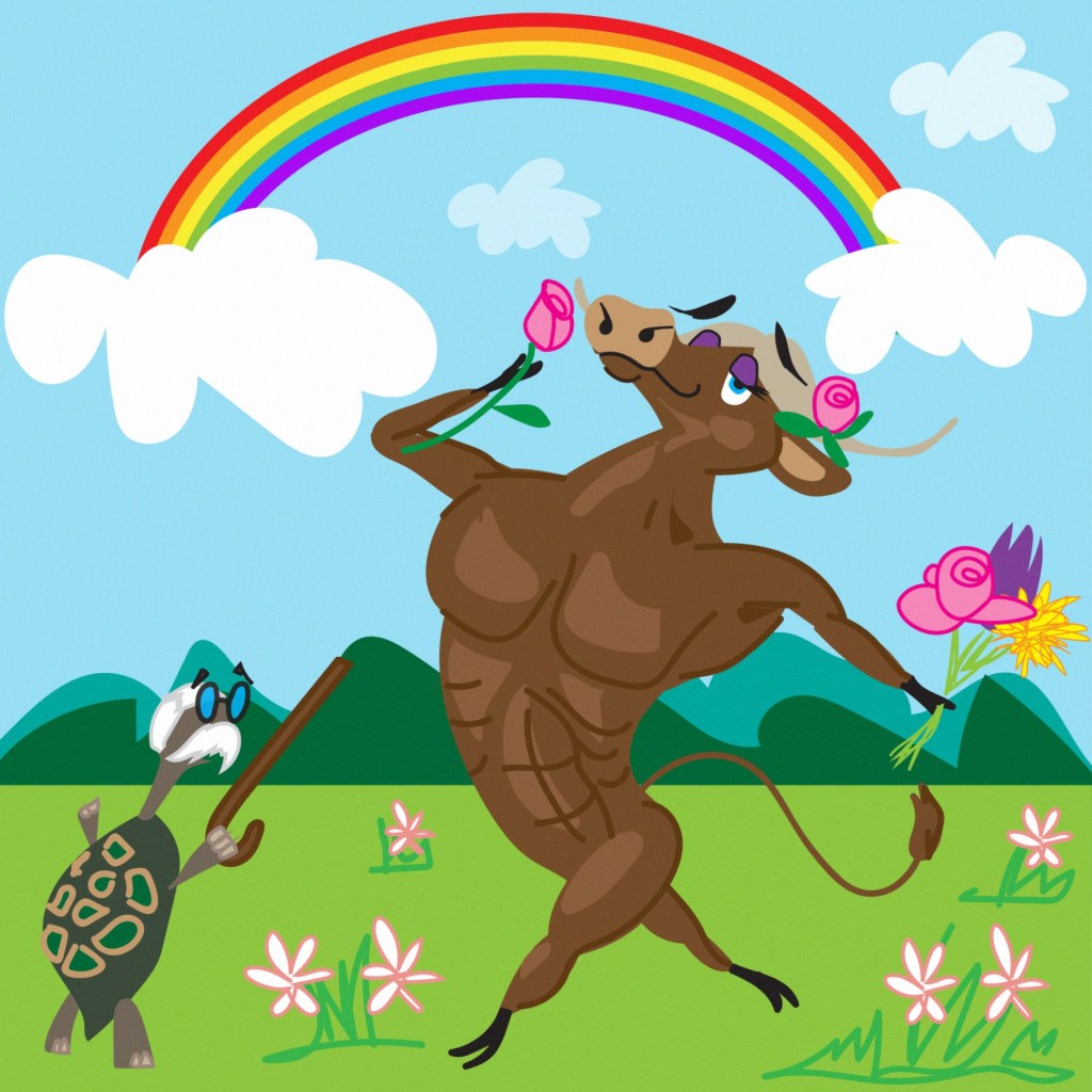Си бил еден бивол што љубел да љуби На страдање нејќел време да губи. Љубел тој сè – дал вол бил ил крава, љубов тој бивол безусловно давал! Бакнувал волно, нежно се галел, сите животни среќни ги правел. Се шлапкал во кал, мирисал рози, со шармот освојувал и јарци и кози. Но старецот-желка направил фрка, па фатил тој сите со гнев да ги брка. А биволот рекол: „Кому ли пречам? Напротив – од љубовни болки јас лечам! Ах, дојди ти желко, јас да те бакнам!” „Море марш ти оттука пред да те акнам!“ старецот-желка на сиот глас рикнал, а потем во оклопот тврд си се пикнал. Во мракот свој скриен, си плачнал од мака зашто во младоста тој недоволно сакал.
