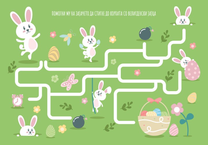 Помогни му на зајачето да стигнe до корпата со шарени јајца. 🙂