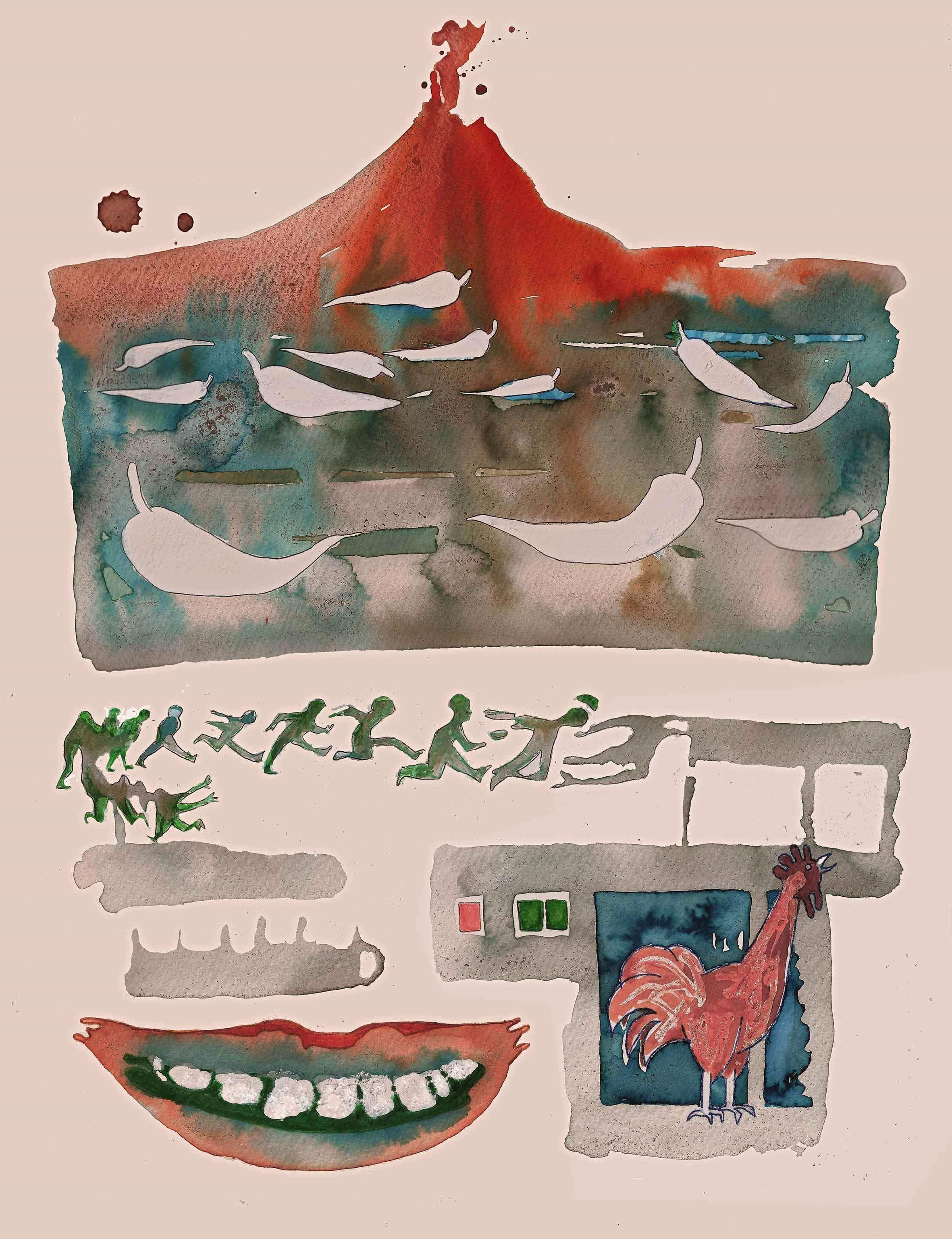 Кога Попокатепетел кукурика, жештина од него блика. Сите в миг се будат, се бунат та се чудат: „В мугри ли најде, петлу стар, ќе си поспиевме – скар! Зошто олку рано нè секираш, сега ли најде да се активираш?“ А Везув пиперки си везе, Фуџи ракиичка си пие со мезе, Етна си плете зимски шал, Кракатау се токми за на бал. Само Попокатепетел шизик се прави, сите бегаат како муви без глави. „Што ви е, луѓе, па само се зезав!“ – рече низ смеа вулканот блескав.