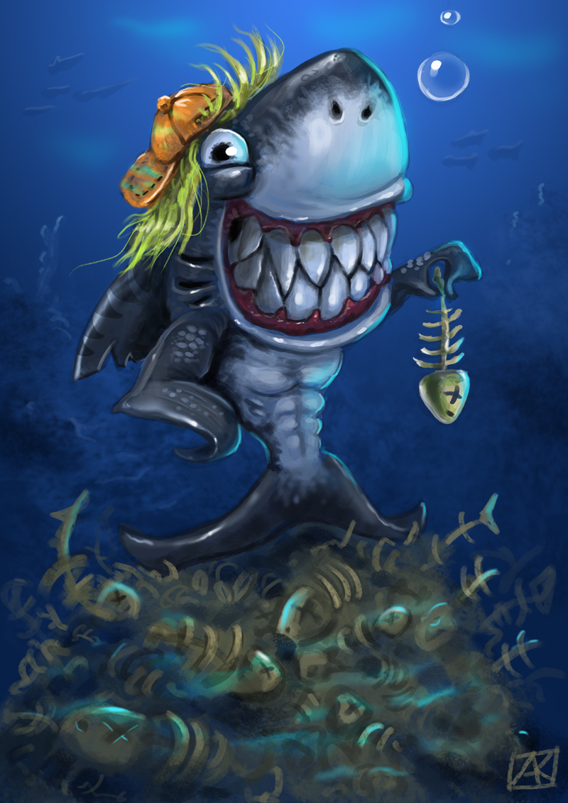 Ајкулче едно од тинејџ доба до некои вистини да дојде, проба: – Мамо, од нас, од тетки и стрини наши, сè живо се плаши. А видат перка секој вреска, Бегај! Опасна ѕверка! Стално иста шема, за миг, жива душа нема. Туристи, глави им чадат, билети за дома, трчаат, вадат. – Такви сме ние, куршум не нè бие. Секоја ајкула, мускул до мускула. Таков ни е сојот, твојот, мојот. Имаме само една мана, цел ден мислиме на храна. Ама, да ти кажам сине, и морето има лоша страна, секој, секому е – храна. Затоа сите се под стрес... па дури и ти, иако си морски пес.