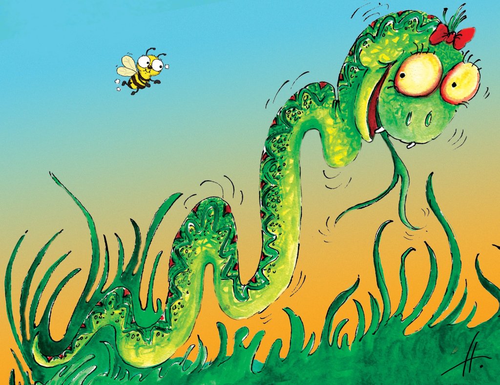 Мајски цветен пејзаж, срца разни грее, змивка зеленосивка шета, никој среќен како неа не е. Скока по ливада со панделка алова, расположена ко бавча портокалова. „Ама е срцка овој свет, зад мене пчелка, пред мене цвет до цвет. Убавина има за секој по ред. Решив, отровот ќе го донирам за хумани медицински цели, ќе се хранам само со плодови зрели. Само, го молам минувачот, во шума и планина, да не гази потамина Знаете, јас сум влекач, тоа ми е маана, да ми даде знакче, да се тргнам на страна.“ Сè стана поубаво во овој свет, Оти зеленосивка, ко што беше ред прочита на својот мобилен твит: „Змивче драго, едвај чекам да сретнам змија од твојот вид.“