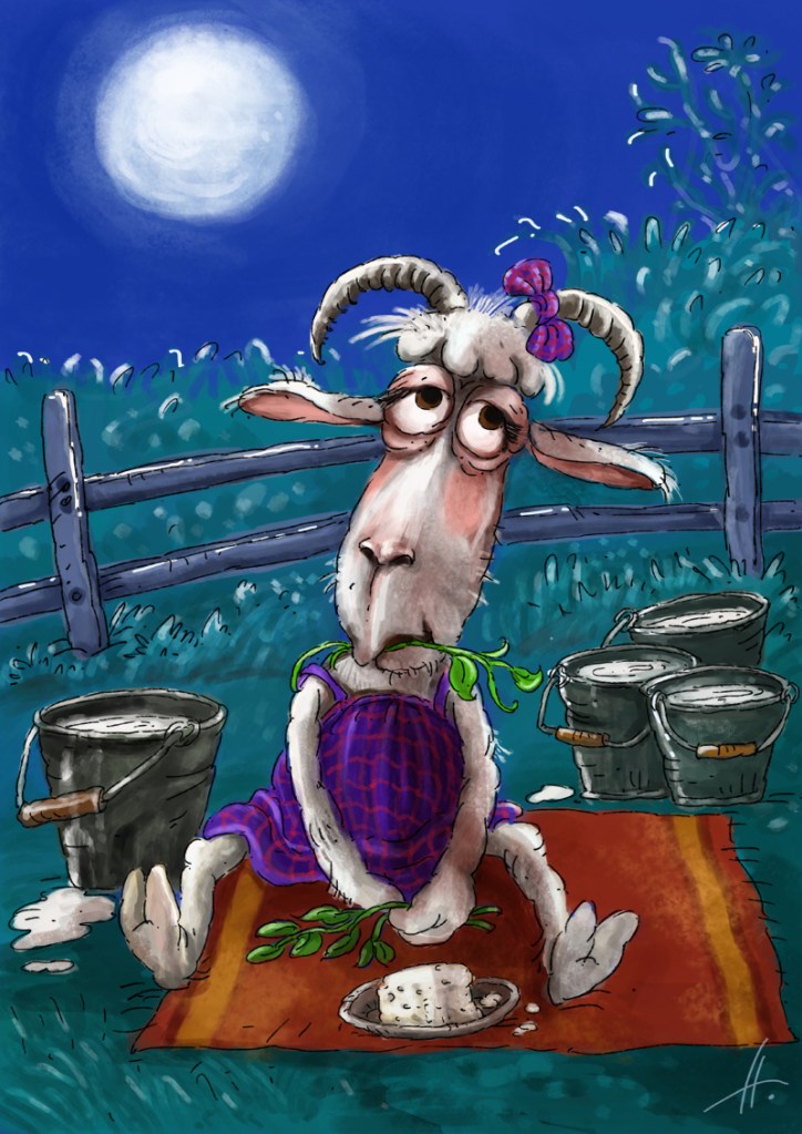 Слушај меее! Не е лесно, а ни интересно, туку просто е ко боза, чуму ми е да сум - коза? Да. Не е едноставно, А што брстиш, не баш бавно, гранки кревки, танки, најубави фиданки? Меее! Така ќе да е. Цел ден брстам гранка, ама по ридови се козам, а вечерта секоја странка: „Дојди, да те молзам.“ Да, не е баш тој систем наш, козо драга, за браво, ама сирењето, што е право, тооолку ти е здраво... Тоа точно е. Но не е сѐ. Меее! Не е лесно и душа ме боли чедна, покрај сѐ ова, да се слуша „Козо мори, една!“ Е, да. Во право е. Меее!