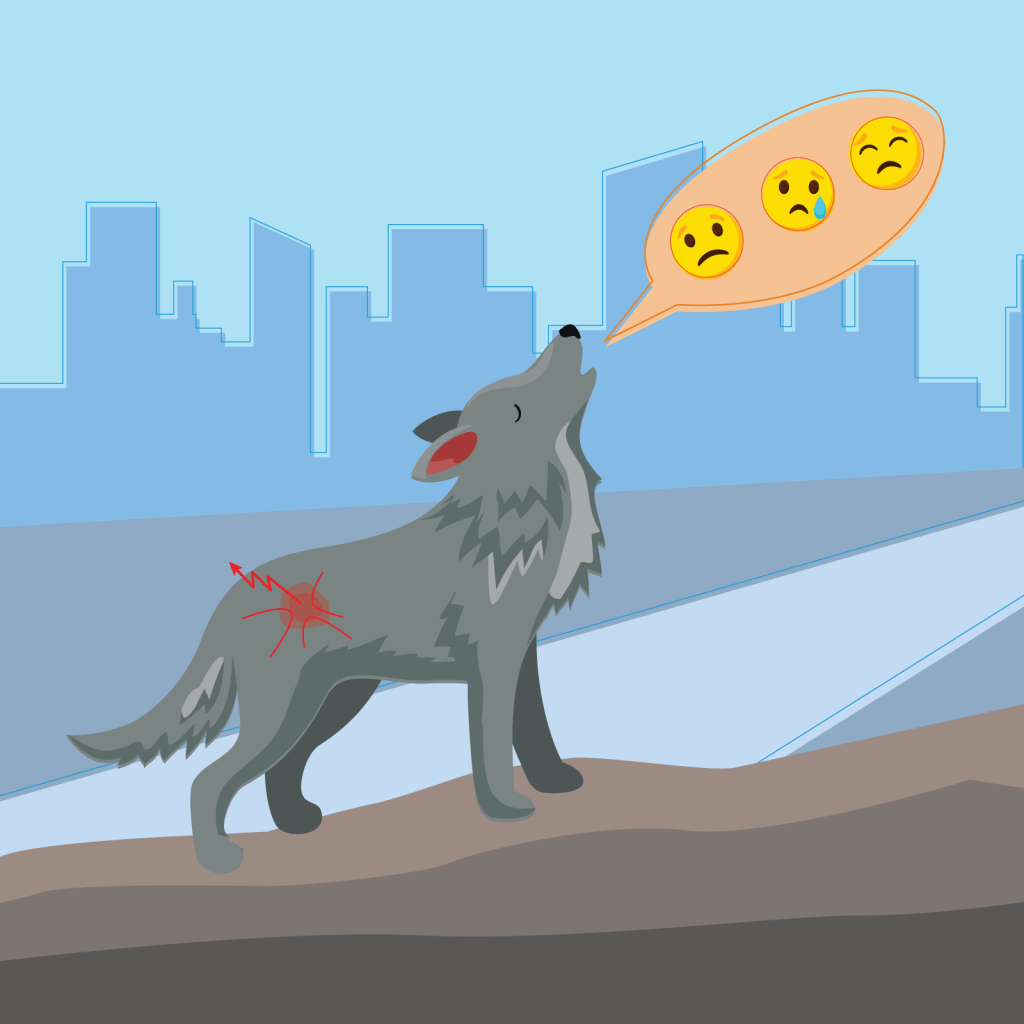 Кога волкот Го шина колкот Го прекрши молкот Почна силно да завива Соседите мислеа навива Неговите вресоци и крици Се слушаа низ цели улици До полицијата стасаа поплаки Не се трпат овие викотници јаки Дајте му нешто за смирување Инаку нема легнување. Волчко инјекција прими И веднаш се смири.