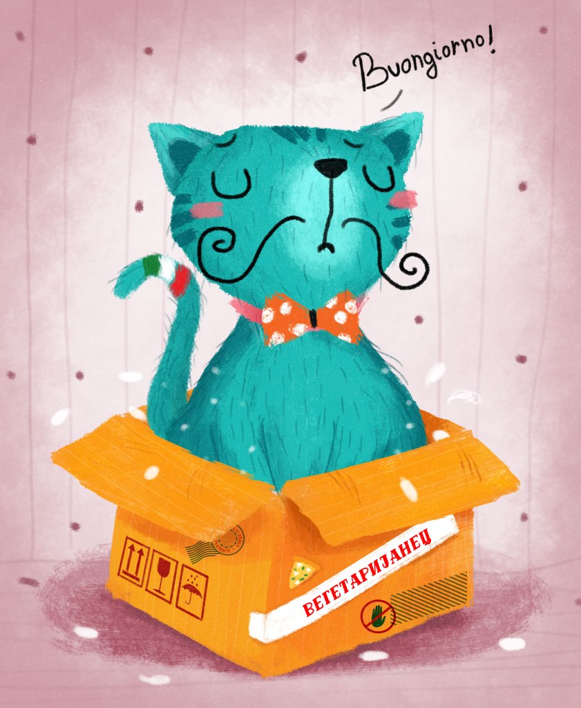 Еднаш на гости, на едни глувци, малкуцка прости, им дојде мачор од Италија. Тие веднаш се пофалија: - Со него се мајтапиме, остри канџи ич не му есапиме! Сакаме гости кога се на пости. Е, глувци-муфци, џабе се испофалија, имаат среќа, голема ко Италија. Мачорот што им е на гости, не пости, мачорот „италијанец“ е мачор - вегетаријанец.