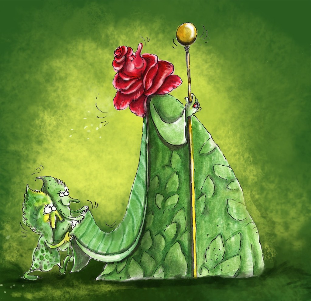 Кралот Ружа беше горд на својата убавина. Кога чекореше низ градините, тоа го правеше толку достоинствено што и тивкиот развигор запираше со дувањето за да може да ѝ се одушевува на неговата елеганција. Убавата миризба што се ширеше околу кралот Ружа ги омајуваше другите растенија наоколу и тие за миг, но само за миг, забораваа дека треба да растат.