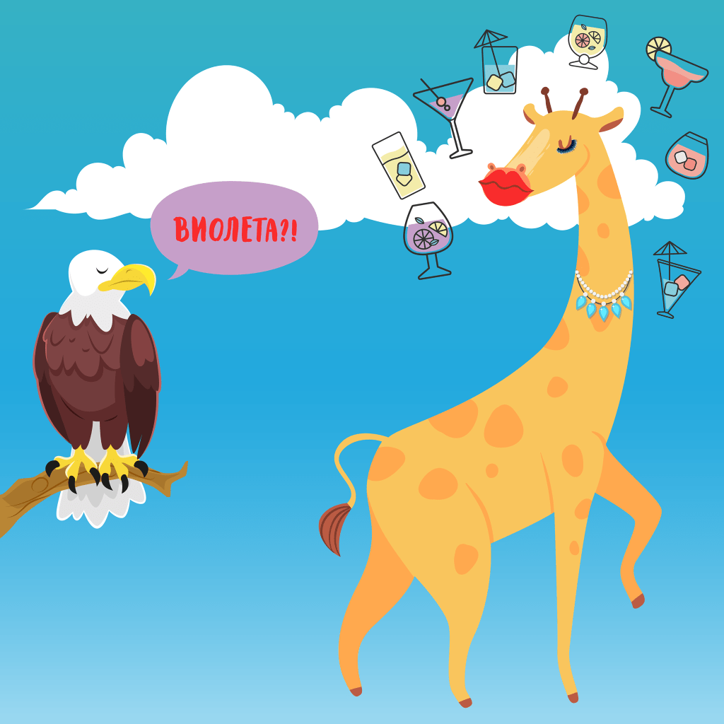 Висока до облаци Стои, џвака, молчи Порачува пијалаци Со цевка шмука, мраз си толчи Вита става Долги трепки Нане си достава Ајстиво е цепки. Во еден миг орелот долета Изненаден извика: Виолета!? Веднаш прибери се И жирафски работи прави На ваков живот заборави. Вики од високо го погледна, Со цврста става наследена, Лимончето го боцна И му порача: Гитла дур не е доцна!