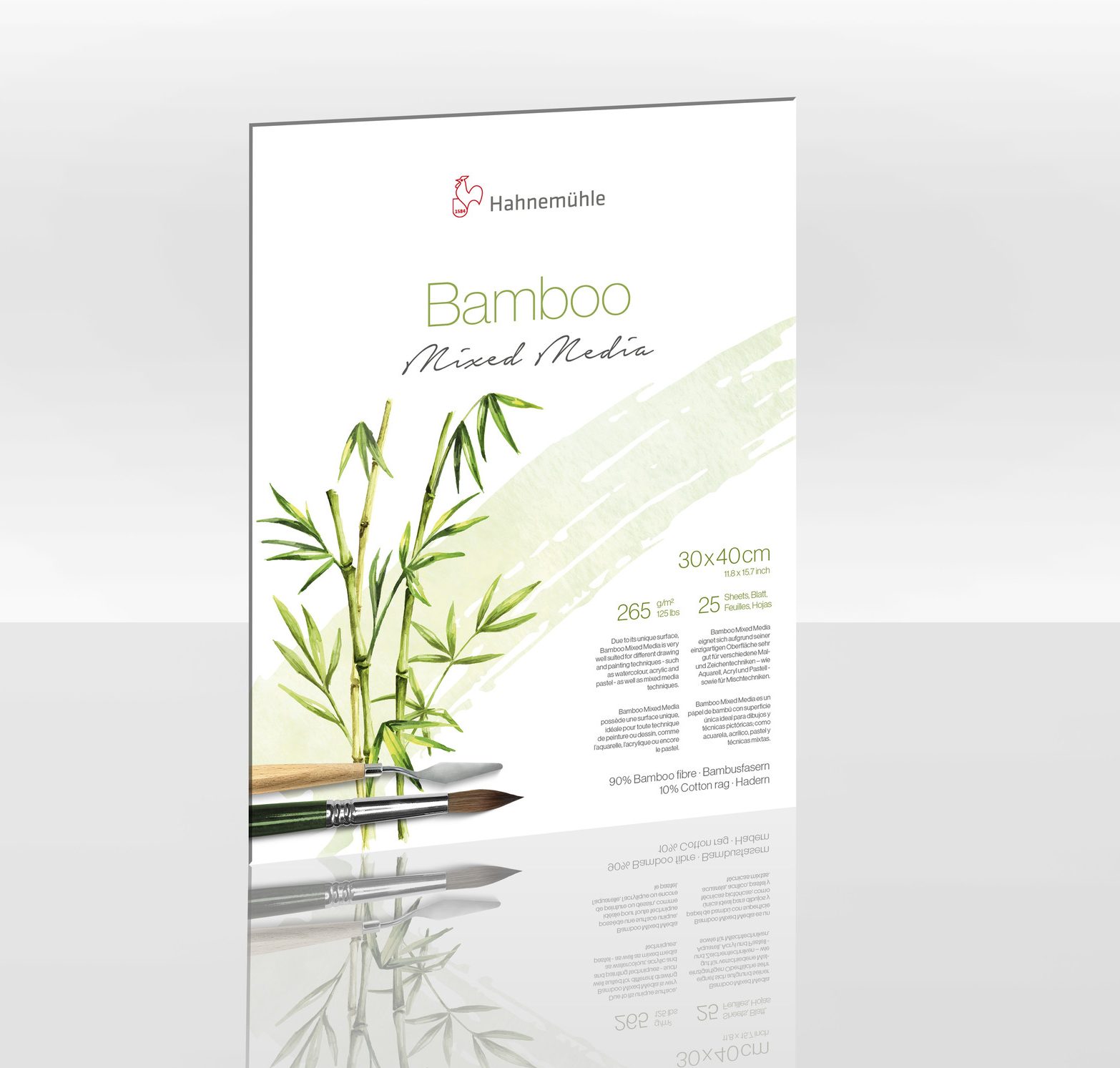 Идеален за сите уметници кои работат во повеќе техники и нивно комбинирање, Hahnemühle Bamboo Mixed Media блокот е прв од традиционалната линија за убави уметности на Hahnemühle направен од бамбусови влакна.