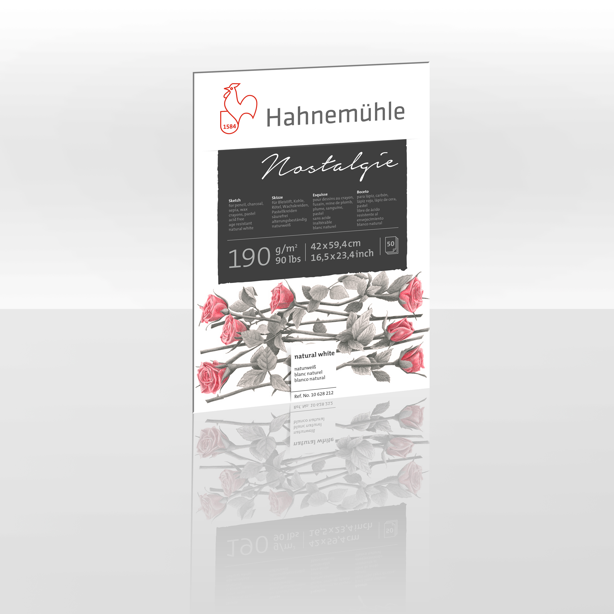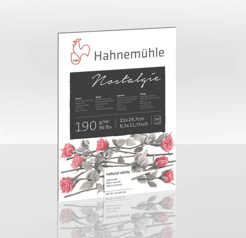 За професионални уметници, студенти, ученици и уметници-ентузијасти – Nostalgie Sketch Pad е цврст блок за скицирање на природна бела 190 гр. хартија со фина текстура (fine grain), достапен во неколку формати. Површината на хартијата со фина текстура го прави идеален за секаков вид цртежи, од прецизен архитектонски цртеж до брз цртеж со жив колорит. Погоден за употреба за сите суви техники на цртање, или нивна комбинација со водени техники, Nostalgie Sketch Pad е неверојатно разноврсна уметничка хартија.