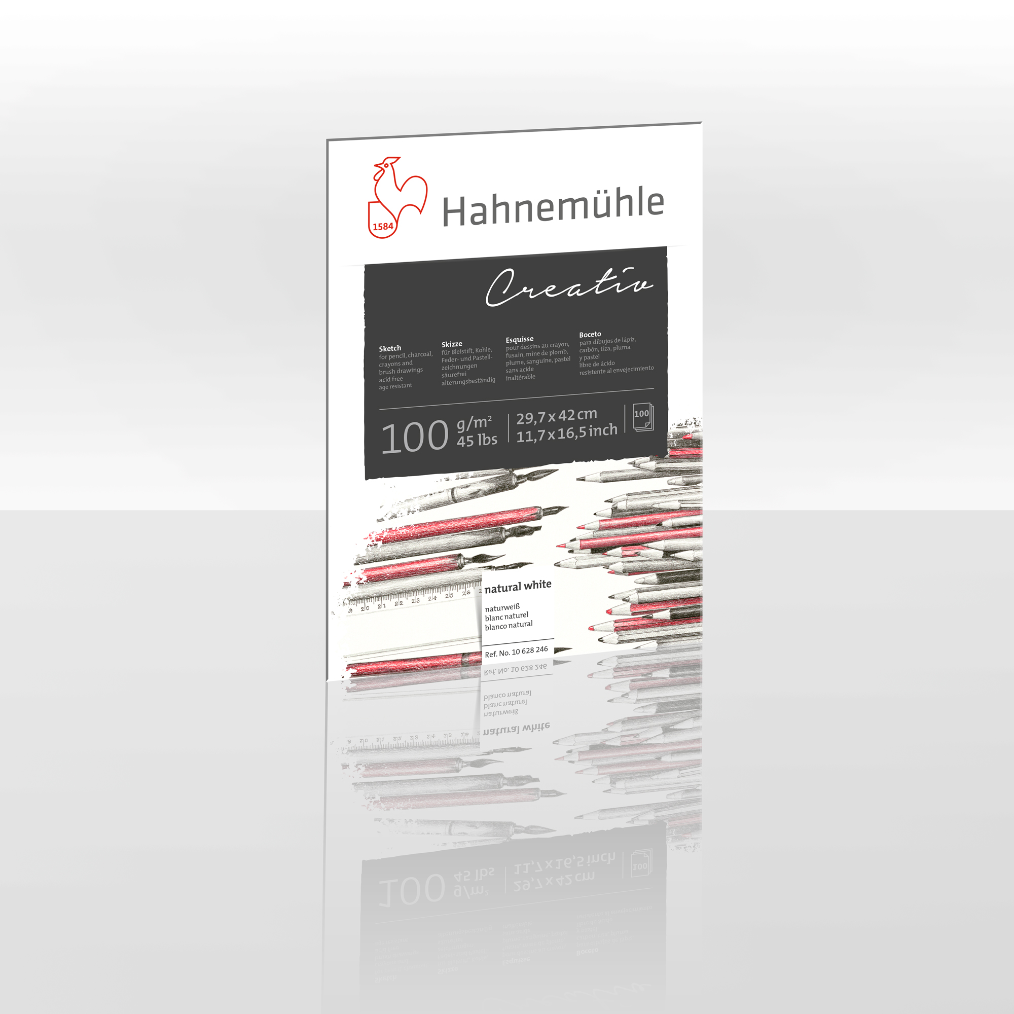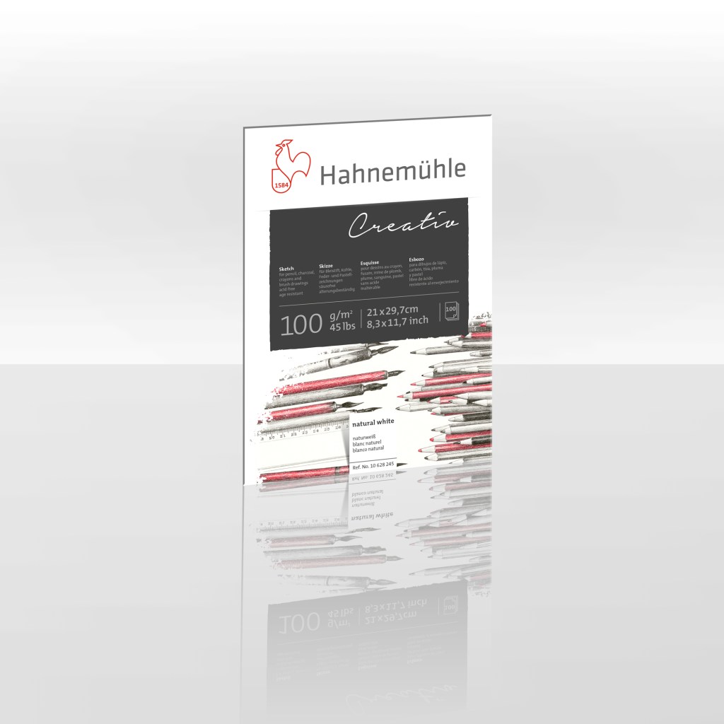 Hahnemühle Creativ e блок од фина, мека, волуменозна хартија за скицирање од 100 грама, соодветна за сите суви техники. Фината мат текстура на хартијата овозможува еднакво распоредување на боите. Природната бела хартија придонесува боите да изгледаат нежно и да се истакнуваат. Како и сите Hahnemühle хартии, Creativ е без киселини и со загарантирана долготрајност.