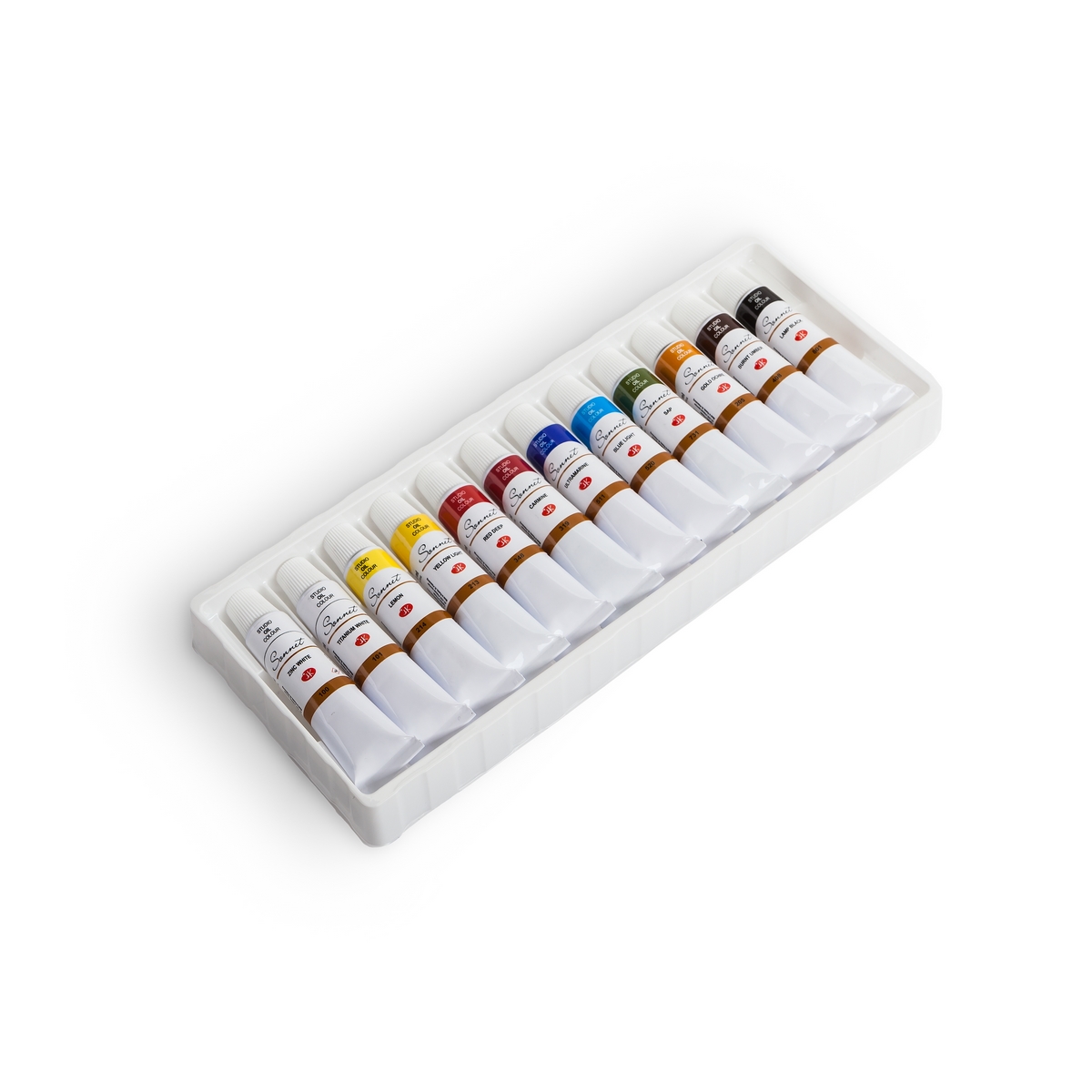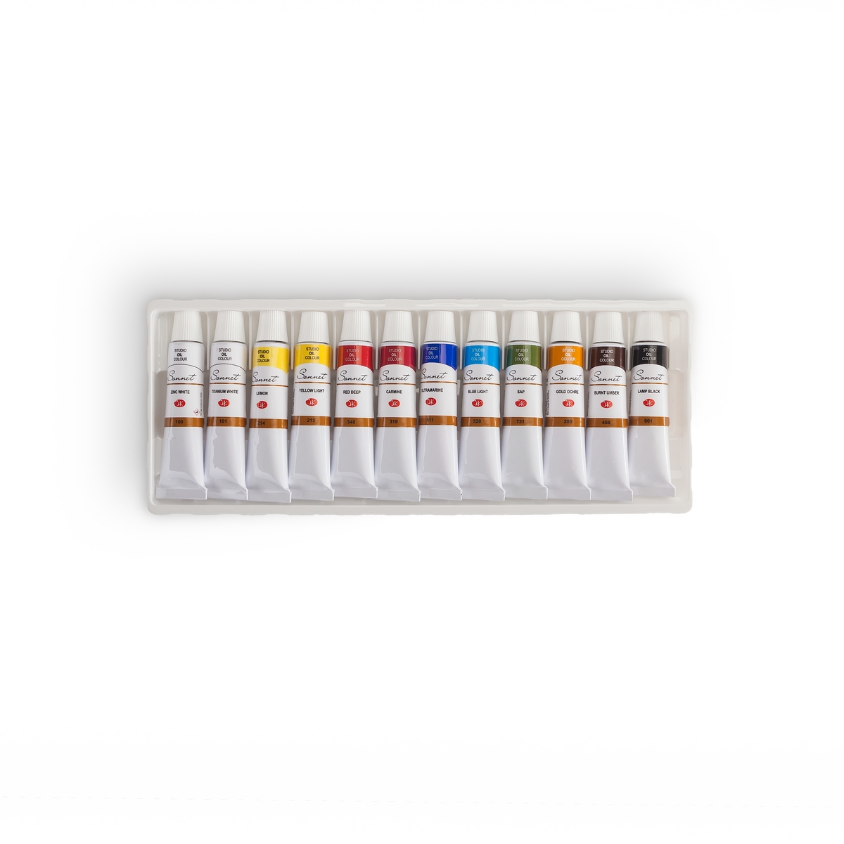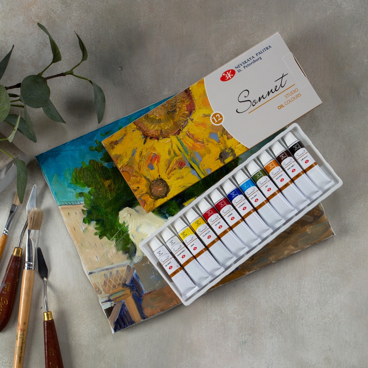 Уметничките бои од серијата „Сонет“ се дизајнирани за да ги задоволат потребите на уметниците-почетници, учениците, а и студентите. Направени врз основа на неколку комбинации на пигменти и ленено масло како врзивно средство. Боите се избалансирани во времето на сушење, а смесата не доведува до несакани ефекти (осветлување, затемнување). Урамнотежената палета од 12 бои во комплет маслени бои „Сонет“ може да реши многу креативни предизвици на младите уметници во едукативни дела, студии и скици.