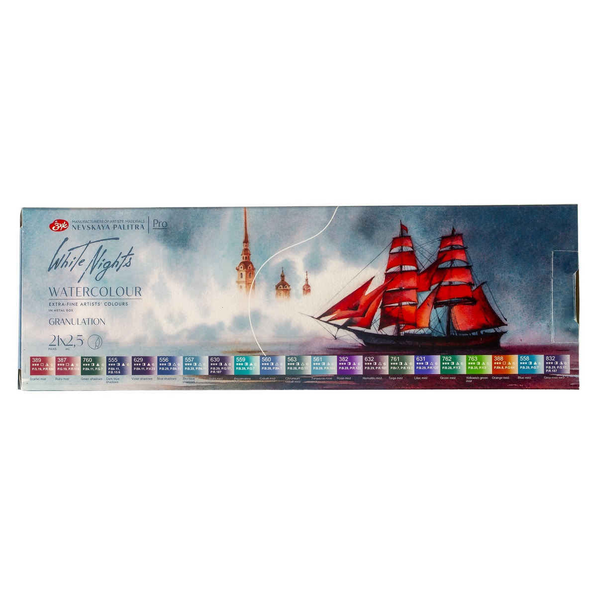 Тематски сет на акварелните бои „Бели ноќи“ (White Nights) – серија наменета за професионални уметници. Сите бои во сетот имаат максимална издржливост на светлина, а повеќето бои се монопигментирани. Боите се направени од висококвалитетни ситнозрнести пигменти и природна гума арабика како врзивно средство. Високата концентрација на пигменти овозможува максимален интензитет на боите. Чистите, реални бои, блиски до спектралните, овозможуваат тие да се мешаат и да се добие богата разновидност на различни нијанси.