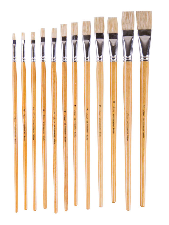 Сликарски четки – Bristle Brush „Sonnet”, рамни, со кратка дршка. Совршени за работа со маслени бои, акрилик и други густи бои.