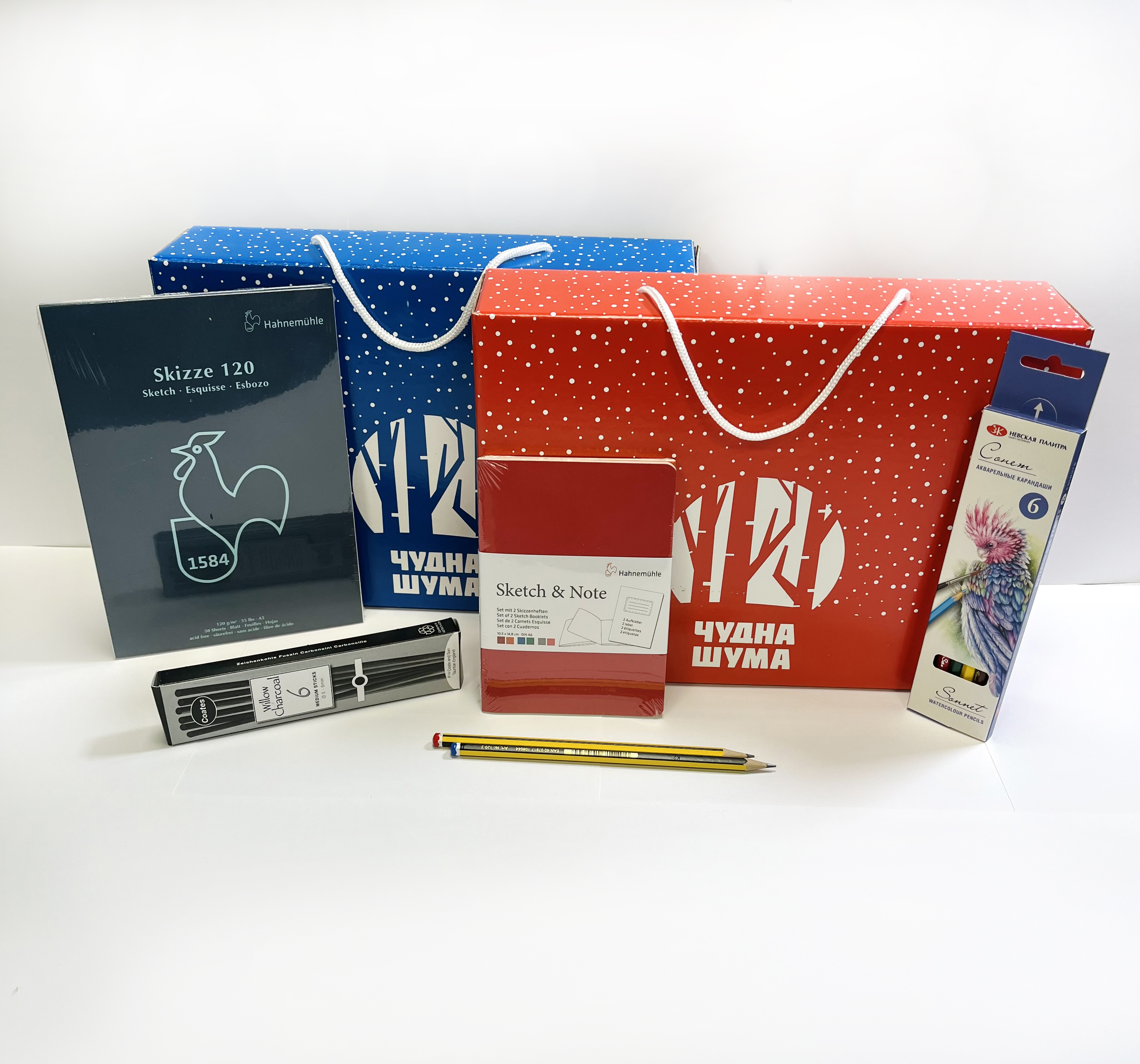 2. Уметнички материјали: хартии, блокови, тефтери, ностеси за скицирање и акварел од реномираниот германски бренд Hahnemühle, како и секаков вид на моливи и бои за суви и водени техники од брендот Nevskaya Palitra и други брендови ![]()